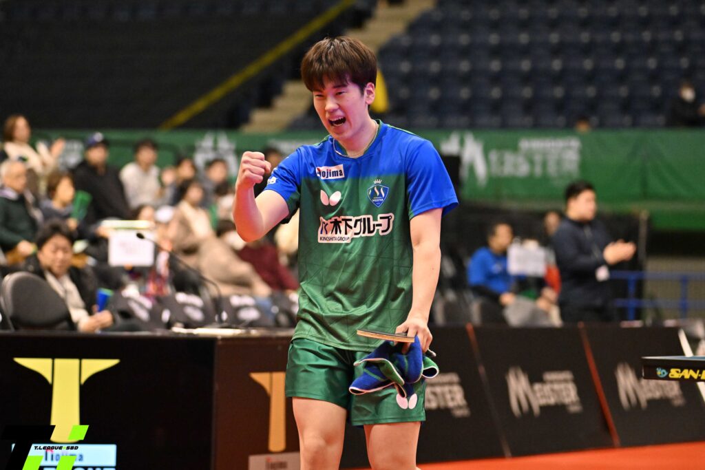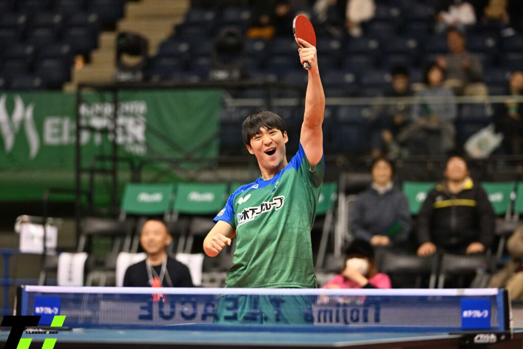 試合は吉村真晴が幸先よく2本のサービスエースを決め主導権を握りリードする展開となるが、パクが徐々に対応。観客がドッと湧くラリー戦となるが、最後はホームの声援を味方にしたパクが勝利。木下マイスター東京が首位に浮上した。