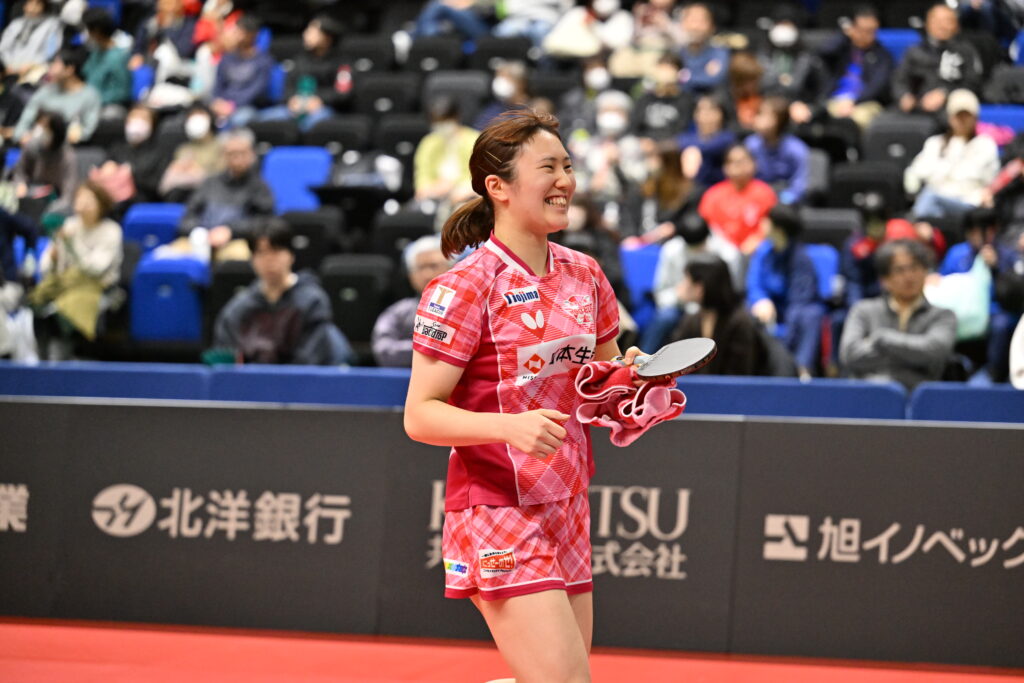 ▲2日間で単複4勝。特に23日の木下アビエル神奈川戦ではチームの勝利を決定づける勝利をあげた笹尾明日香